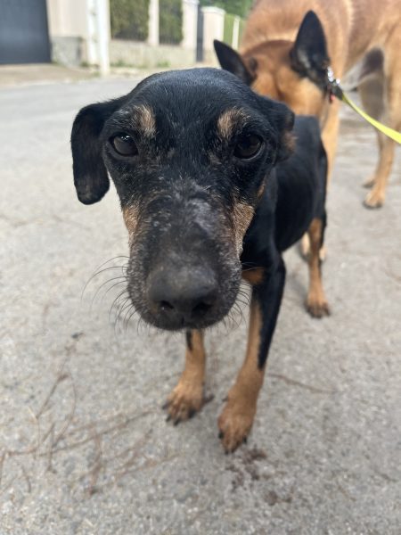 Es una perrita pequeña de unos 4-5 años. No tiene chip, está acostumbrada a estar en casa, muy limpia, parece bien alimentada y sin bichos. Podría ser de Olivares, Salteras o Villanueva, tenia las almohadillas dañadas de caminar mucho.