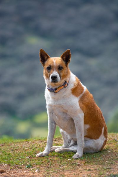 Perra color marrón y blanca de tamaño medio, con collar naranja como el de la foto, se perdió el día 18/04/23 en el Camino Palmilla, Sanlúcar la Mayor. Tiene el rabo corto, está castrada, es peludita y responde al nombre de PUMA.