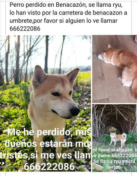 Perro perdido el día 6 de septiembre, su nombre es Ryu, está herido de una pata. La última vez que lo vieron fue en el camino de los toros en Benacazon.