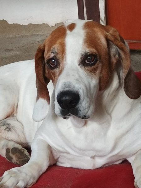 Se llama Snoopy es un pastor vasco con una manchita blanca en un ojo.