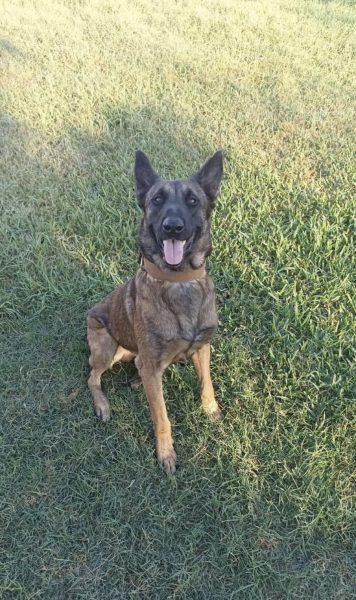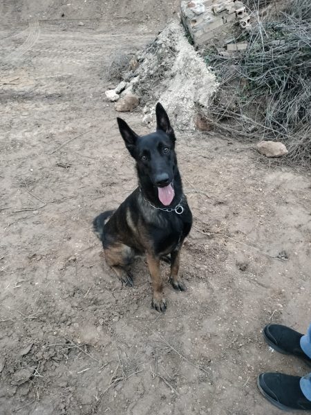 Malinois perdido en Pilas. Lleva correa y collar. Es de color negro y marrón