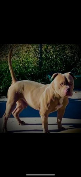 Sea perdido máximo un perro encantador american bully se lleva muy bien con las personas es color champang con una línea blanca en el pecho sea perdido entre olivares y salteras puede acabar en cualquier pueblo por favor si lo ven llamen 642327137