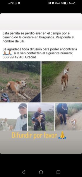 Por favor si lo veis, llamad al 620592632 o al 696636747.