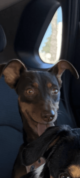 Perra asistadiza vista en San Juan de Aznalfarache en la carretera dirección Tomares a las 14:45 el 13/06/23. Collar negro con tarchuelas plateadas. Responde al nombre de Flaka.