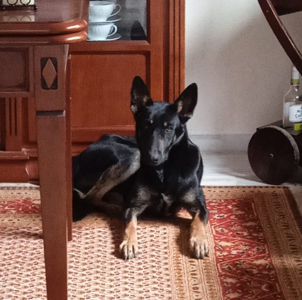 Llevaba collar negro con una placa gris con su nombre («Bubba») y nuestro número de teléfono. No tiene chip ya que llevaba sólo días con nosotros.