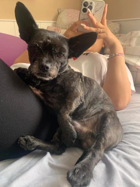 Perro pequeño perdido el 01/05/22 en Olivares (Sevilla). Visto por última vez en la zona de Albaida y en la carrretera de Sanlúcar. Es una mezcla de bulldog francés y yorkshire, de color negro. Atiende al nombre de Blaky. Tiene chip y lleva un collar marrón con chapa donde está grabado un teléfono de contacto. Por favor, si lo ven, intenten cogerlo y llamarnos. Gracias