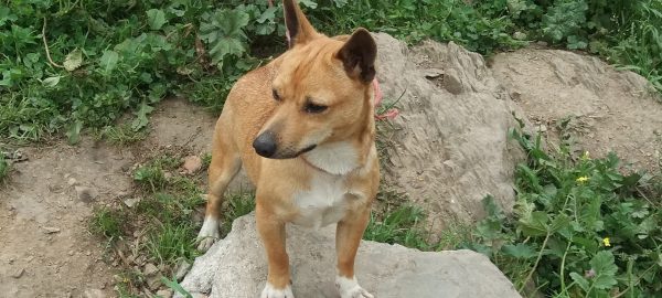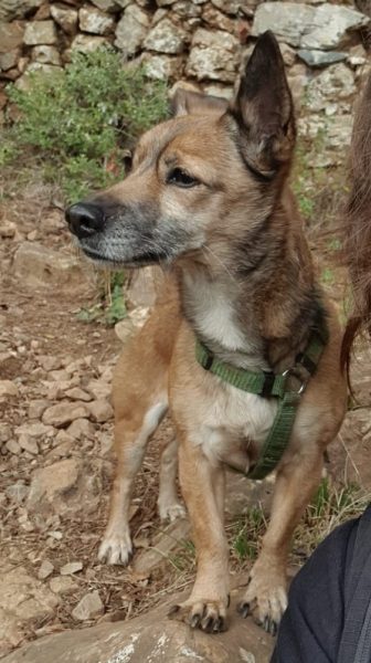 Perrita pequeña de color canela, mezcla de podenco con algo, extramadamente cariñosa.