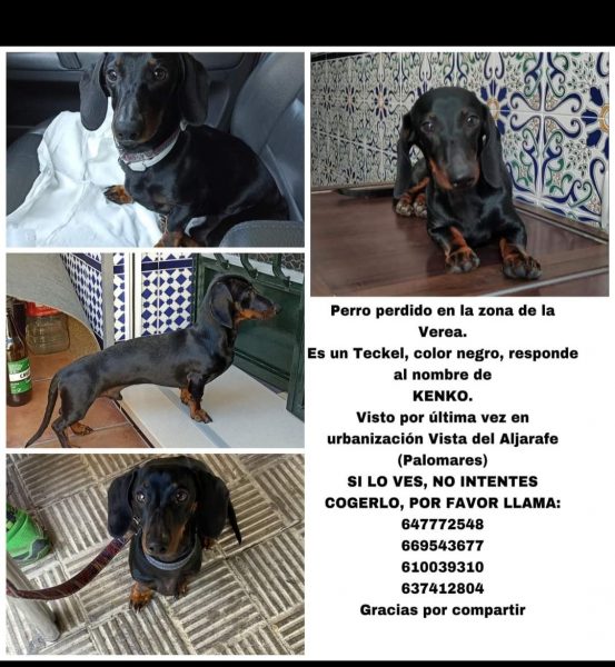 KENKO se perdió en Coria del Río, fué visto en distintos puntos entre Palomares y Almensilla. Nadie lo ha vuelto a ver desde el sabado día 1 de octubre.